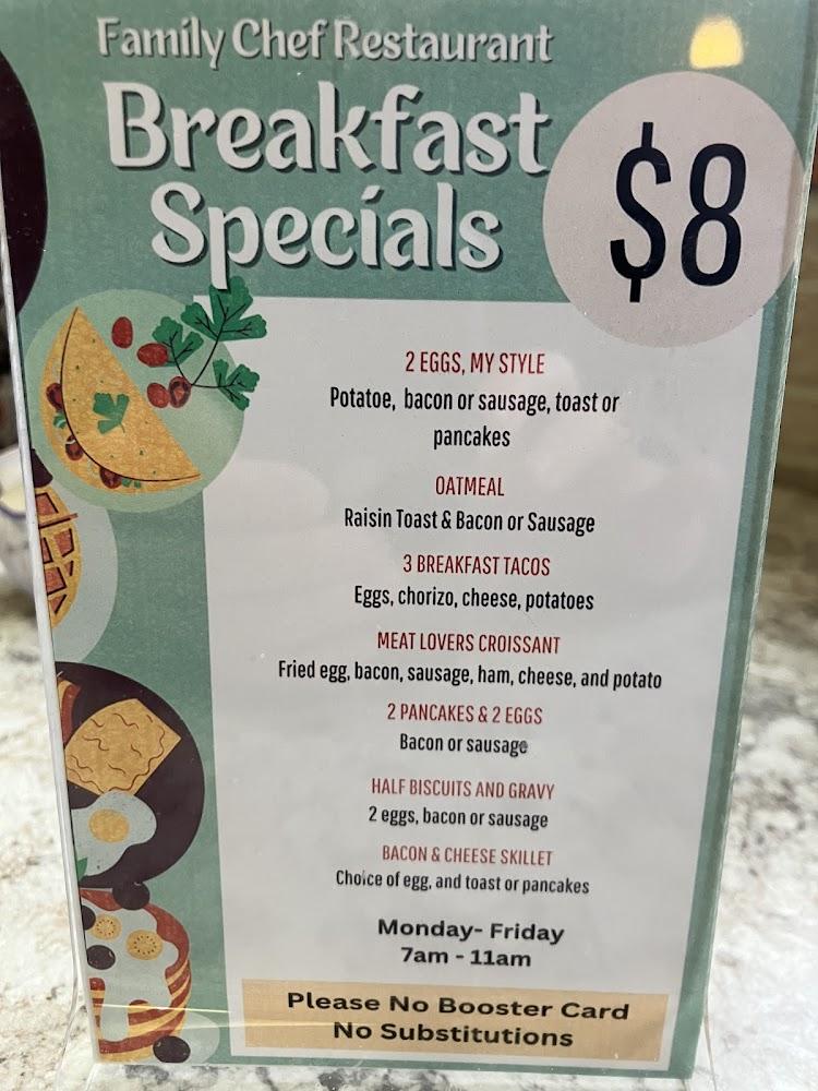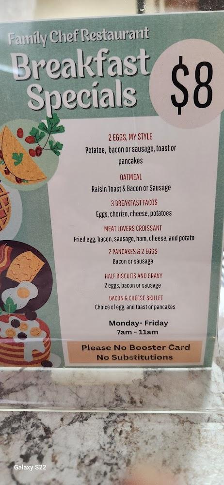 Welcome to Family Chef, your go-to family restaurant located at 701 W Lincoln Way, Morrison, IL. With a delightful menu that caters to breakfast, lunch, and dinner cravings, we pride ourselves on serving hearty, traditional dishes in a relaxed atmosphere. Enjoy our excellent coffee and an extensive selection of teas, perfect for any time of day. Family Chef is designed for accessibility, ensuring everyone feels welcome. Dine in, take out, or enjoy delivery services, all in a setting that’s perfect for groups and families. Join us for a memorable meal that everyone can enjoy!